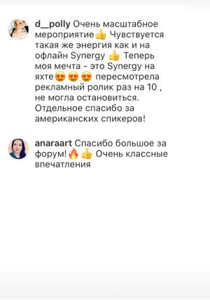 Среди хедлайнеров и спикеров в программе Synergy Online Forum — экономисты, аналитики, бизнес-консультанты, политики, общепризнанные лидеры мнений в своих областях. На Форуме уже выступили Ицхак Адизес, Кьелл Нордстрем, Ирина Хакамада, Нассим Талеб, Джордан Белфорт, Михаил Кучмент, Евгений Черняк и многие другие яркие личности. Панель спикеров Synergy Online Forum постоянно дополняется. После оплаты вам на почту придет письмо с чеком и просьбой подтвердить подписку. Сделайте это — и свободно пользуйтесь Synergy Online.