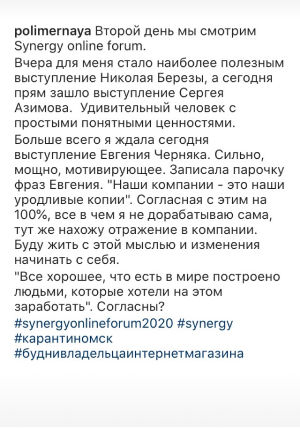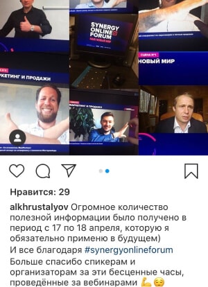 Synergy Online Forum — масштабное digital-мероприятие, которое собирает сотни крупнейших спикеров со всего мира. Приглашенные эксперты открыто обсуждают ключевые темы дня — от карантина и посткризисного маркетинга до фитнеса и запуска стартапа — и делятся взглядами на то, как меняется мир, к которому мы привыкли.